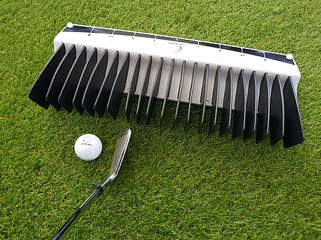 En god måde at træne en mere kontrolleret afslutning på greenen, er at opbygge en simpel teknik, som du anvender som grundlag for alle dine slag omkring hullet - dette kan SWING TRAINER’en hjælpe dig med, ved brug af de markerede streger der er placeret på SWING TRAINER’ens bagkant.