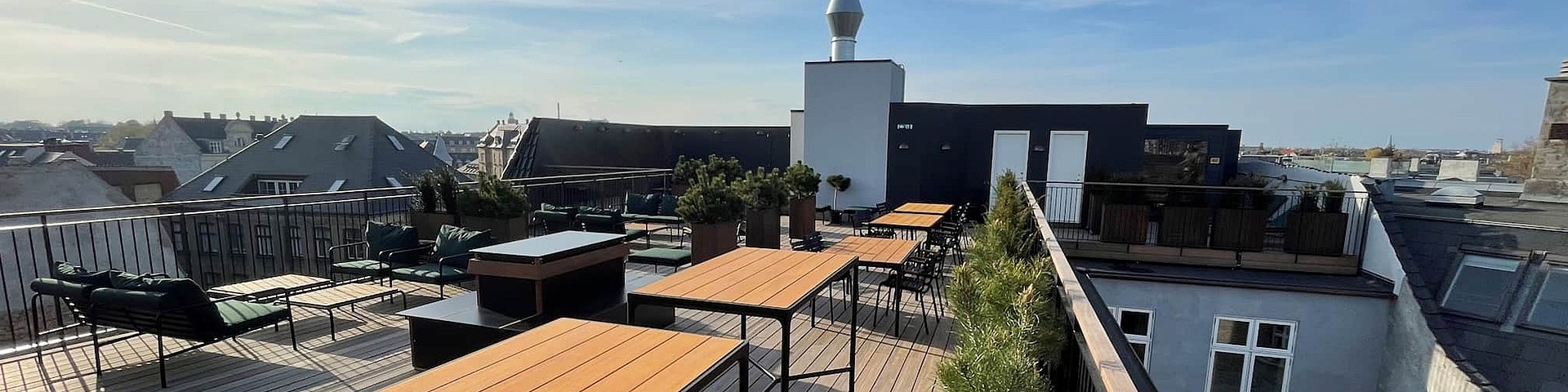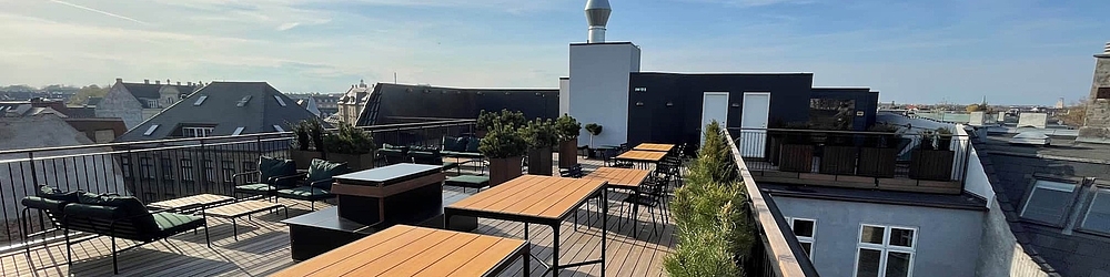En av hotellets store attraksjoner er den nye takterrassen, hvor du kan nyte utsikten over Frederiksberg og Vesterbro. Perfekt for en rolig stund etter dagens golf eller sightseeing.